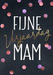 Vrolijke felicitatiekaart voor een verjaardag van een moeder. Met lieve tekst en roze met paarse confetti.