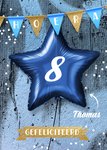 Feliciteer de jarige met deze feestelijke kaart. Bovenaan hangt een slinger met de tekst "HOERA". In het midden van de kaart is een ballon afgebeeld. De naam en leeftijd kan je aanpassen.