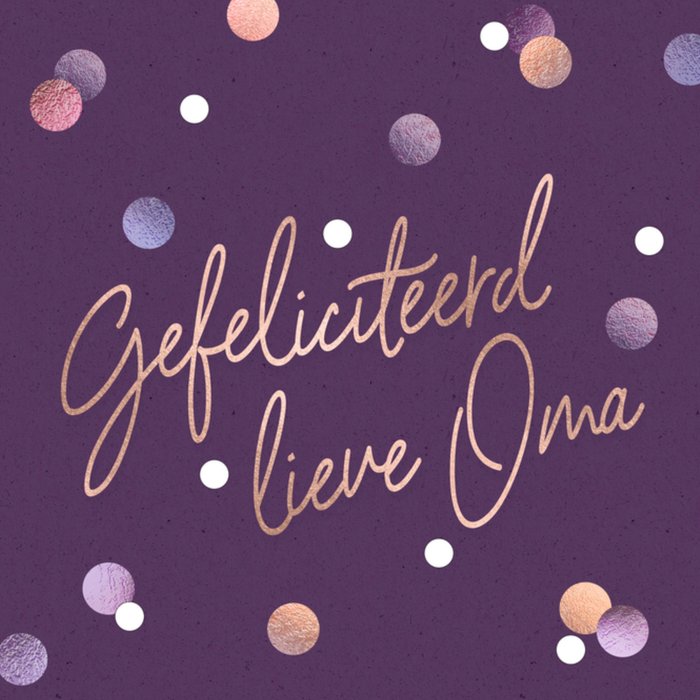 Lief felicitatiekaartje met confetti en geschreven tekst Gefeliciteerd lieve Oma.