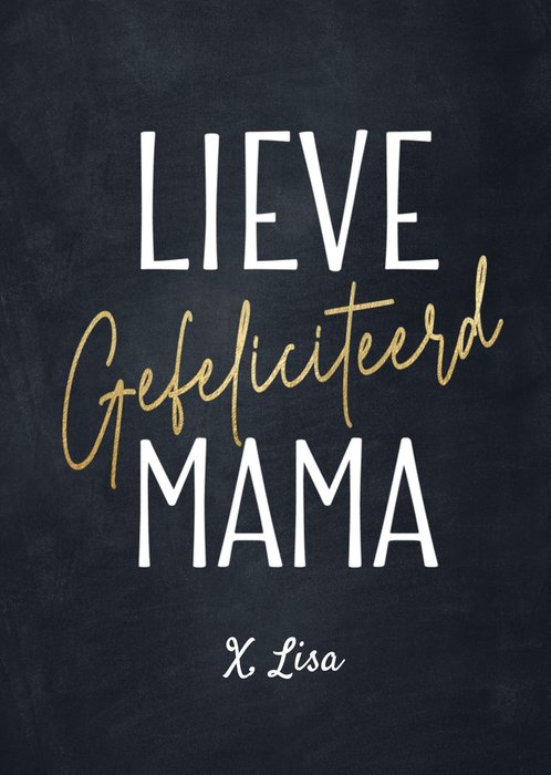 Wil jij je moeder verrassen met een originele felicitatiekaart? Dan zit je met deze basic kaart met gouden tekst helemaal goed.