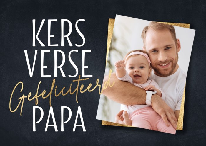 Stijlvolle felicitatiekaart met foto voor een kersverse vader.