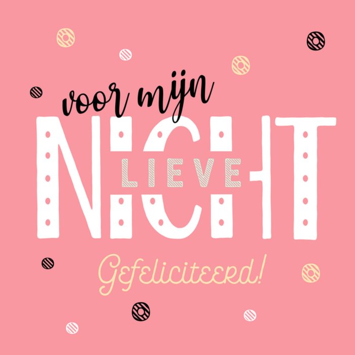 Feestelijke felicitatiekaart voor een nicht.