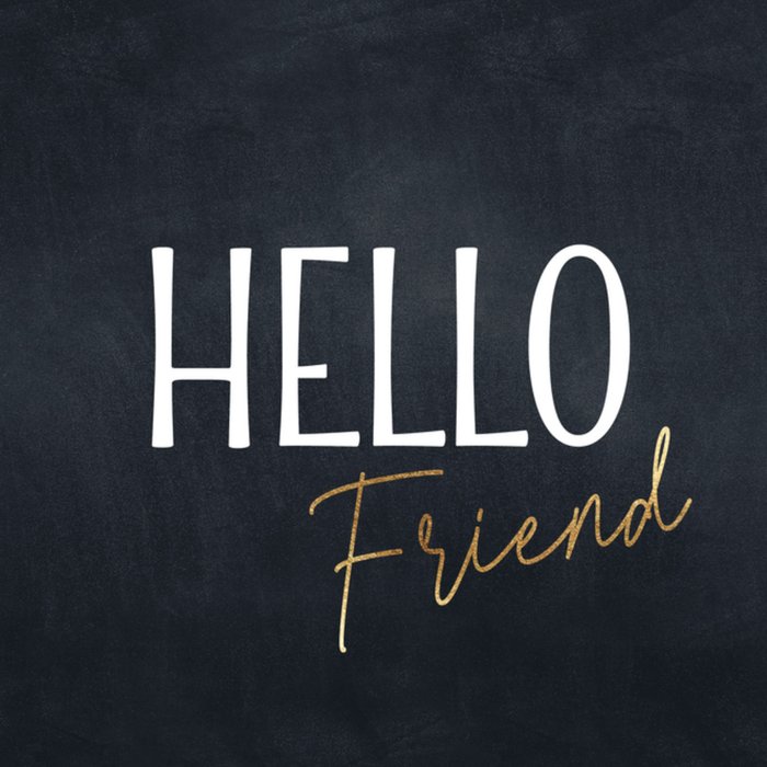 Denken aan kaart voor een man met stoere tekst ‘Hello’ op een zwarte achtergrond.