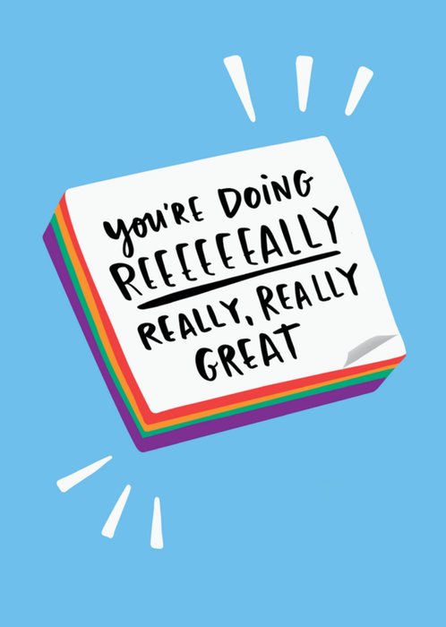Denken aan kaart met de tekst: You're doing reeeeeally, really, really great