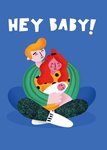 Leuke geboortekaart met illustratie en de tekst: Hey baby!