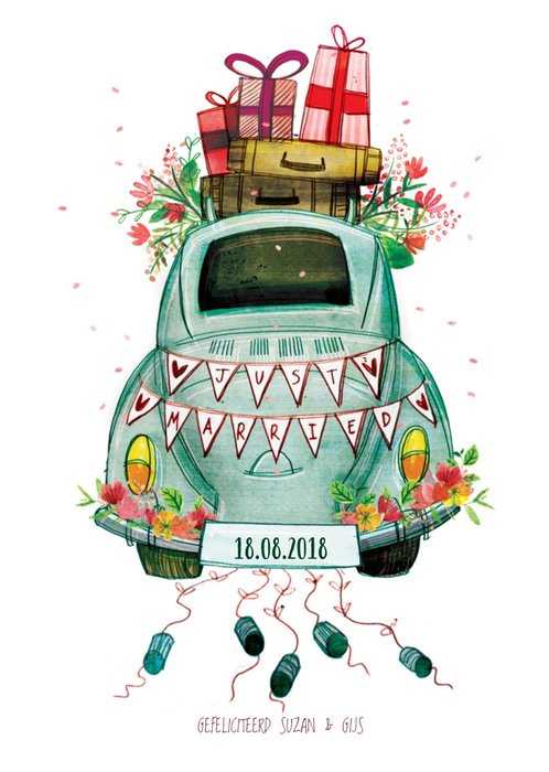 Grappige wenskaart met illustratie en tekst.