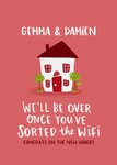 Vrolijke nieuwe woning kaart met aanpasbare naam.