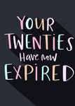 Grappige wenskaart met de tekst: Your twenties have now expired.