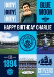Leuke verjaardagskaart met fotos van Manchester City, aanpasbare foto en de tekst: 'Happy Birthday'. Verras de jarige voetbalfan met deze fotografische en kleurrijke verjaardagskaart van Manchester City.