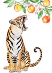 Op de kaart staat groot een illustratie van een tijger die naar sinaasappels hapt.