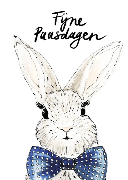 Schattige kaart om iemand een fijne pasen mee te wensen met op de kaart een haas en de tekst: Fijne Paasdagen.