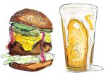 Leuke verjaardagskaart met bier en hamburger.