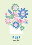 Mooie denken aan kaart om iemand te laten weten dat je aan hen denkt met op de kaart een bosje bloemen in een envelop.