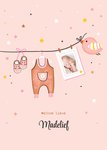 Lieve geboortekaart met illustratie, foto en aanpasbare naam.