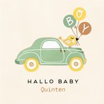 Leuke geboortekaart met auto en aanpasbare naam.