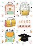 Ken jij iemand die geslaagd is? Stuur een leuk en vrolijk geslaagd kaartje. Op deze kaart staat: Hoera geslaagd.