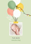 Leuke moederdagkaart met foto en illustratie van ballonnen.
