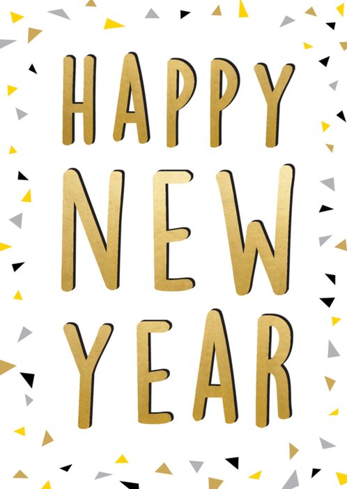 Nieuwjaarskaart van Patricia Maria om iemand een fijne nieuwjaarswisseling mee te wensen met grote goude letters: Happy New Year.