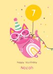 Verras met deze leuke kaart van Marieke Witke. Op de kaart staat een kat en de daam: Happy birthday. Je kunt ook een naam en leeftijd toevoegen.