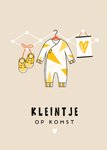 Wat leuk! Jij kent iemand die in verwachting is. Stuur deze lieve kaart met babykleertjes en de tekst: Kleintje op komst.