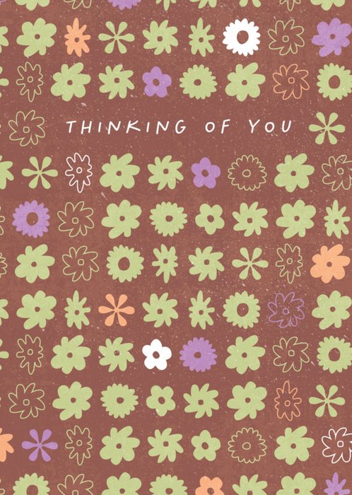 Fleurige denken aan kaart met bloemen en de tekst: Thinking of you