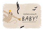 Geboortekaartje met een aapje en de tekst: Welcome baby!