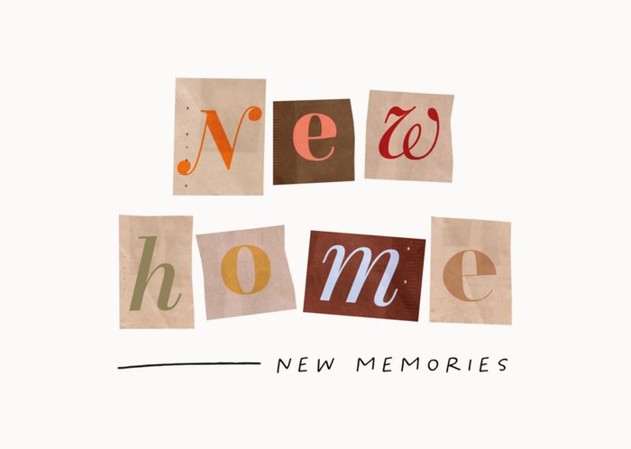 Leuke nieuwe woning kaart met de tekst: New home, new memories.