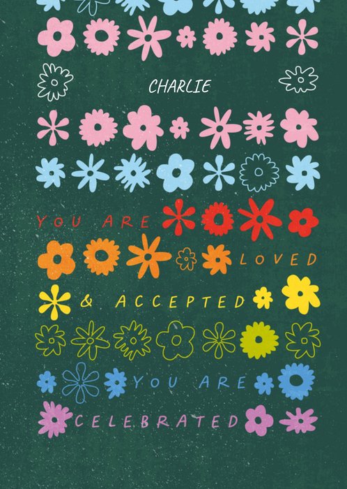 Fleurige verjaardagskaart met aanpasbare naam.