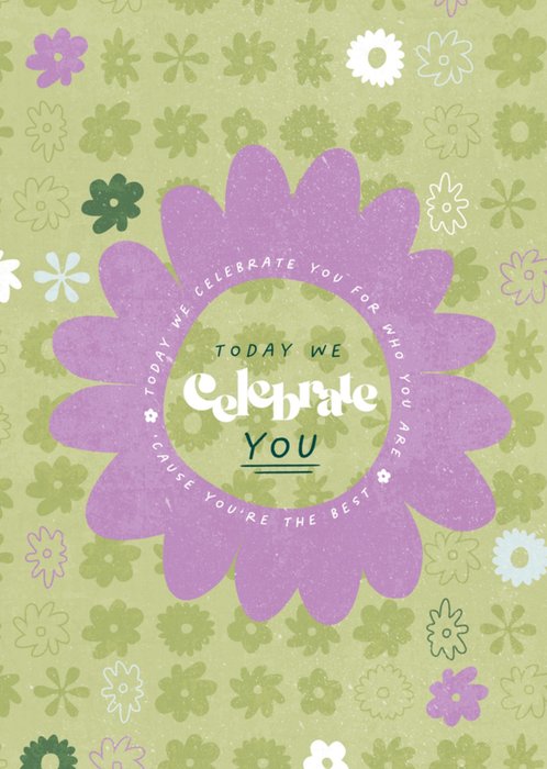 Fleurige verjaardagskaart met bloemen en de tekst: Today we celebrate you
