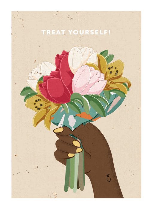 Verstuur deze mooie en pastel kleurige kaart met erop een bosje bloemen en de tekst: Treat yourself!