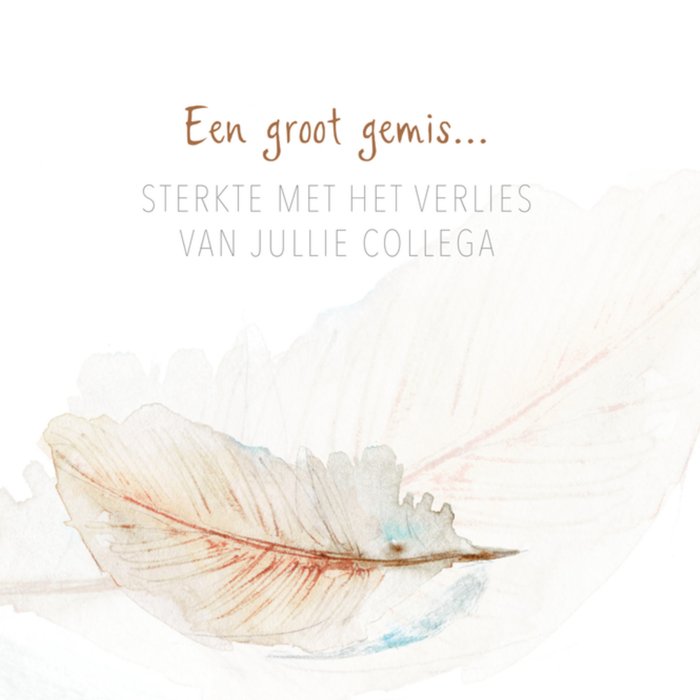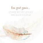 Niets is erger dan iemand te verliezen. Stuur daarom deze mooie condoleancekaart om sterkte te wensen. Op de kaart staat": een groot gemis...sterkte met het verlies van jullie collega.
