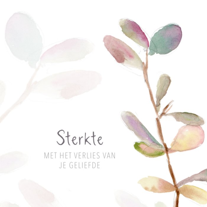 Mooie condoleancekaart met illustratie en de tekst: Sterkte met het verlies van je geliefde.