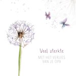 Niets is erger dan iemand te verliezen. Stuur daarom deze mooie condoleancekaart om sterkte te wensen. Op de kaart staat: veel sterkte met het verlies van je opa.