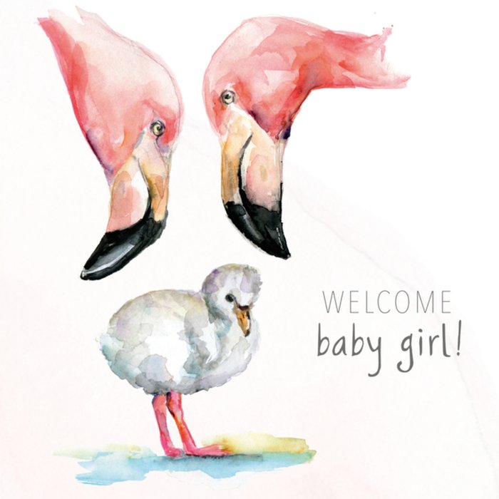 Feliciteer de kersverse ouders met de geboorte van hun kleine meid. Vader- en moederflamingo bekijken en beschermen hun eigen jonkie.