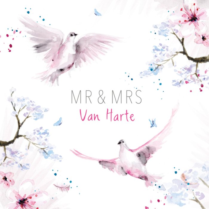 Verras met een mooie illustratie van Michelle Dujardin. Op deze mooie kaart staat: Mr & Mrs van harte.