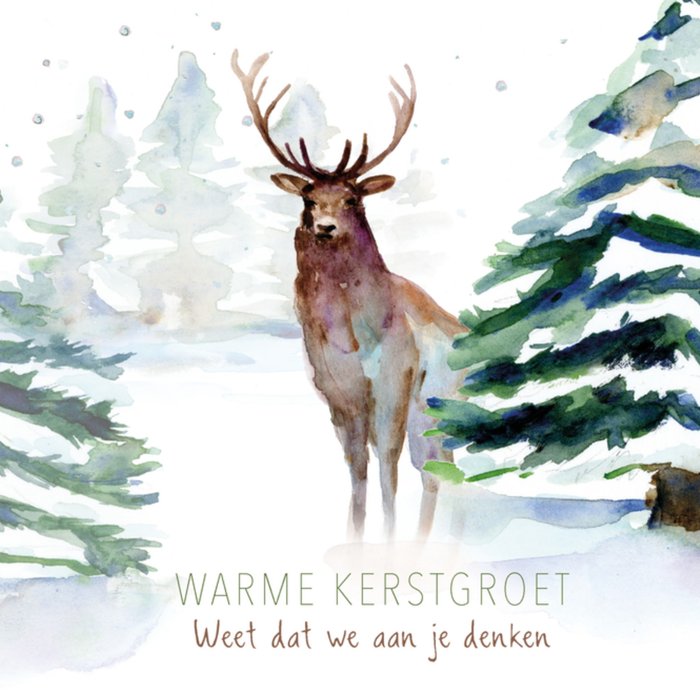 Een leuke en creatieve Kerstkaart van Michelle Dujardin met diertjes om te laten weten dat je aan iemand denkt. Op deze kaart staat: Warme kerstgroet. Weet dat we aan je denken.