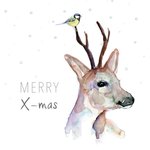 Verras iemand met deze schattige kerstkaart van Michelle Dujardin. Op de kaart zie je een mooi geschilderd rendiertje in de sneeuw.