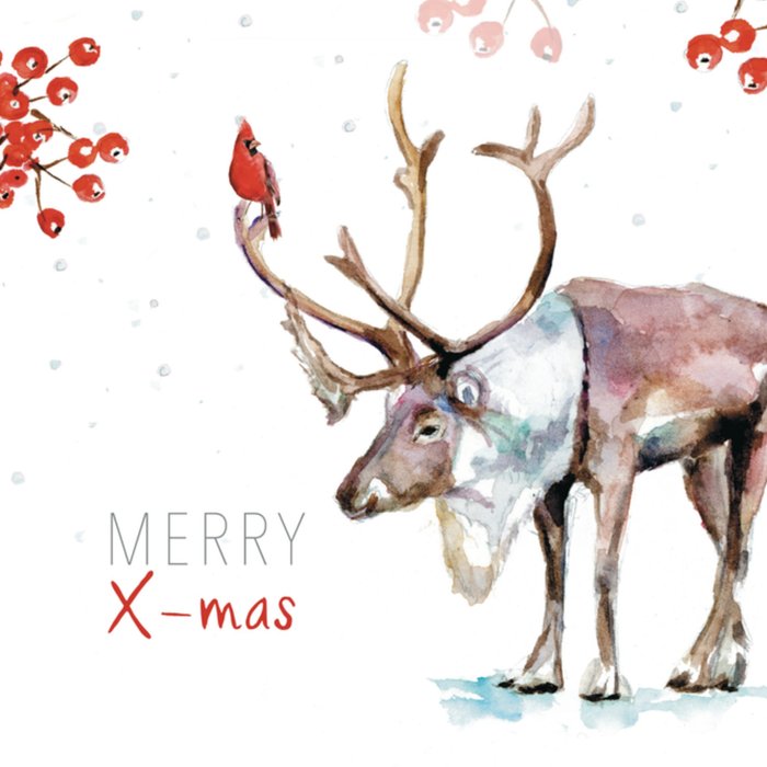 Wens een fijne kerst met dit mooie kerstkaartje met rendier en die tekst: Merry X-mas.