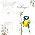 Verras iemand met deze schattige kerstkaart van Michelle Dujardin. Op de kaart zie je een mooi geschilderd vogeltje in de sneeuw.