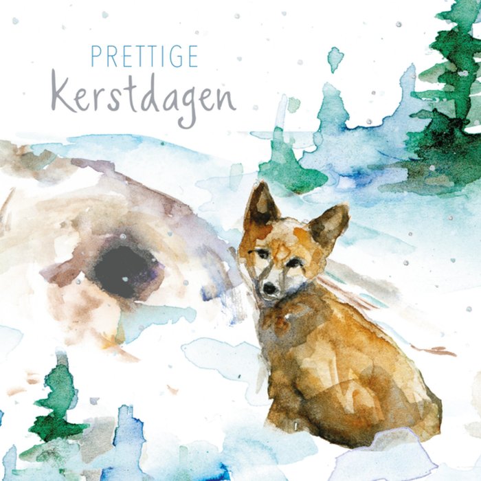 Verras met deze vrolijke kerstkaart met een aquarel illustratie van een vos. De kaart is niet aanpasbaar.