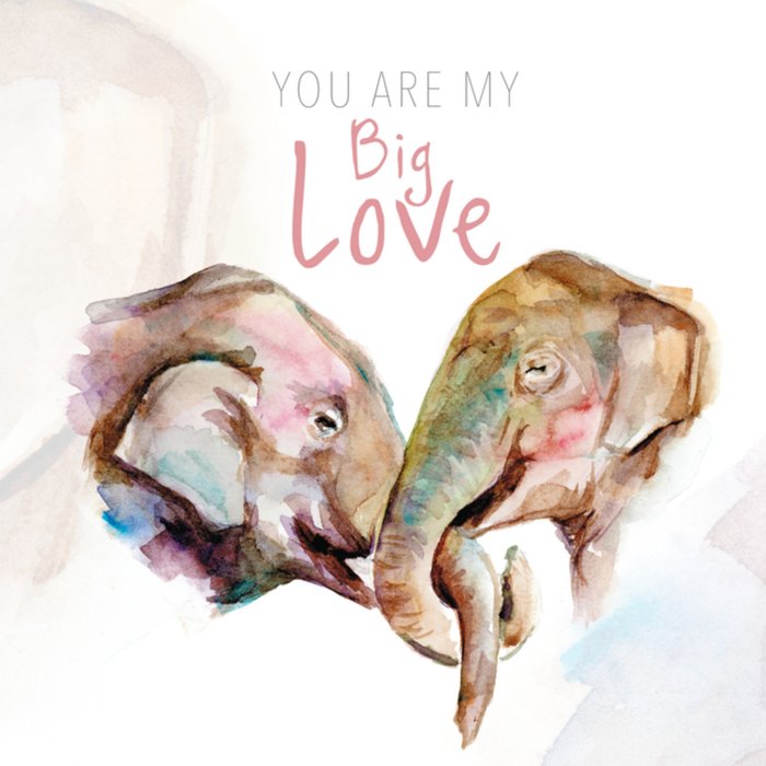 Verras jouw valentijn op Valentijnsdag. Op deze kaart zie je twee verliefde olifantjes en de tekst: you are my big love.