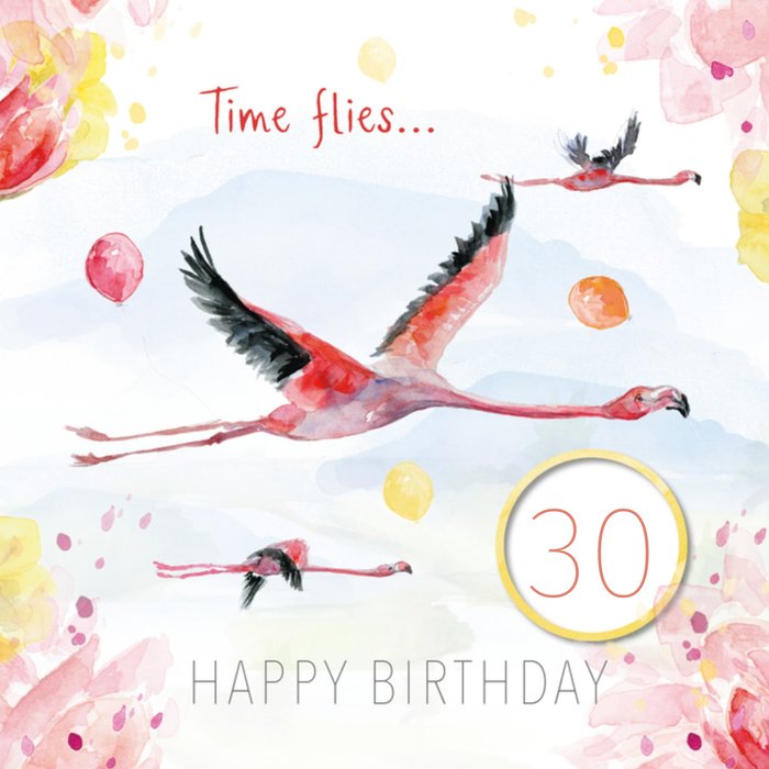 Een leuke en creatieve verjaardagkaart van Michelle Dujardin met diertjes. Op deze kaart staat: Time flies... Happy birthday.
