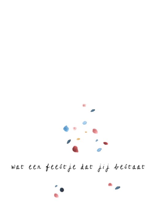 Vrolijke verjaardagskaart met de tekst: Wat een feestje dat jij bestaat.
