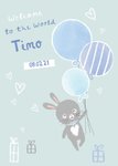 Schattige geboortekaart met illustratie en aanpasbare naam.
