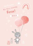 Schattige geboortekaart met illustratie en aanpasbare naam.