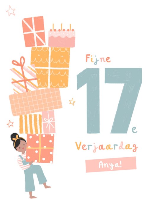 Leuke verjaardagskaart met illustratie en aanpasbare naam.