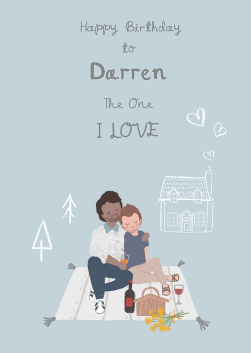 Leuke verjaardagskaart met illustratie en aanpasbare naam.