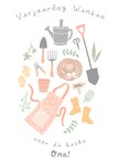 Verjaardagskaart met tuingereedschap en de tekst: Verjaardag wensen voor de beste oma!