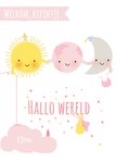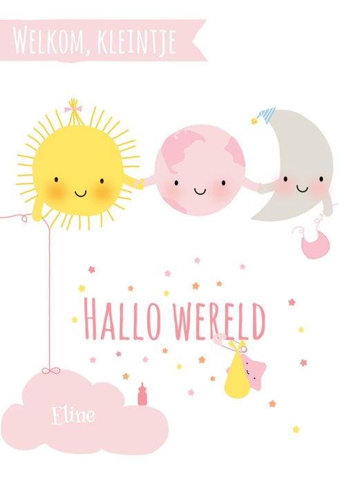 Lieve geboortekaart met illustratie en aanpasbare naam.