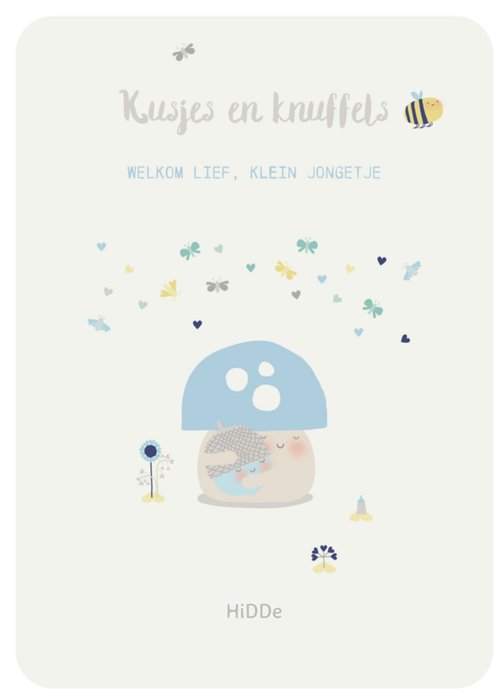 Lieve geboortekaart met aanpasbare naam en illustratie.
